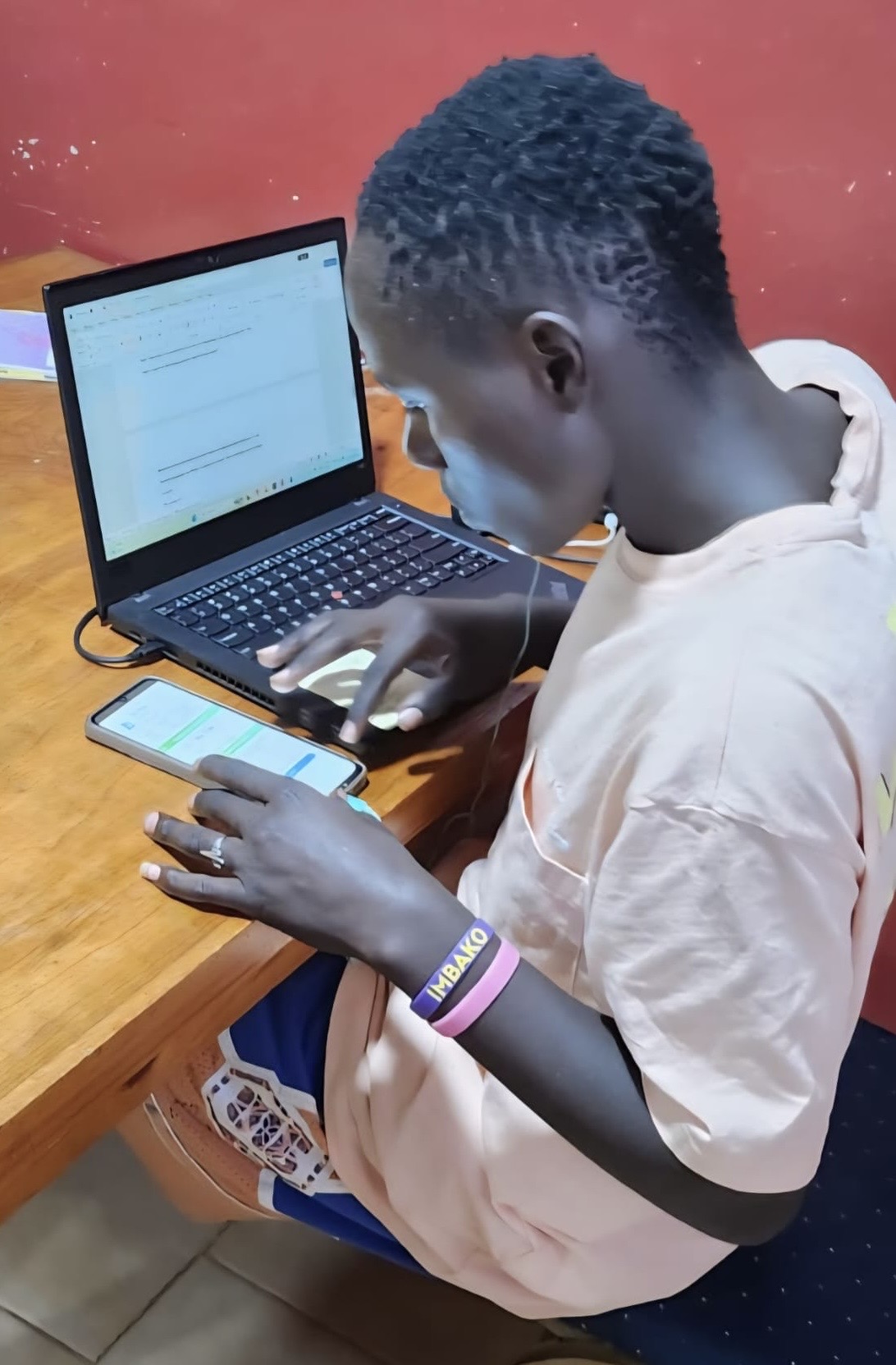 Learning new skills for the road ahead. One of our graduates practicing with the technology he’ll use in college and beyond.
