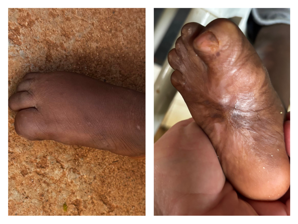 The burn wasn’t properly treated, and as a result, during healing, the toes curled under and grew to the ball of his foot. He walks with a limp and has very poor balance. When walking, he puts all his weight on his heel instead of the weight being distributed across the sole of the foot – something that could cause even more problems as he grows.